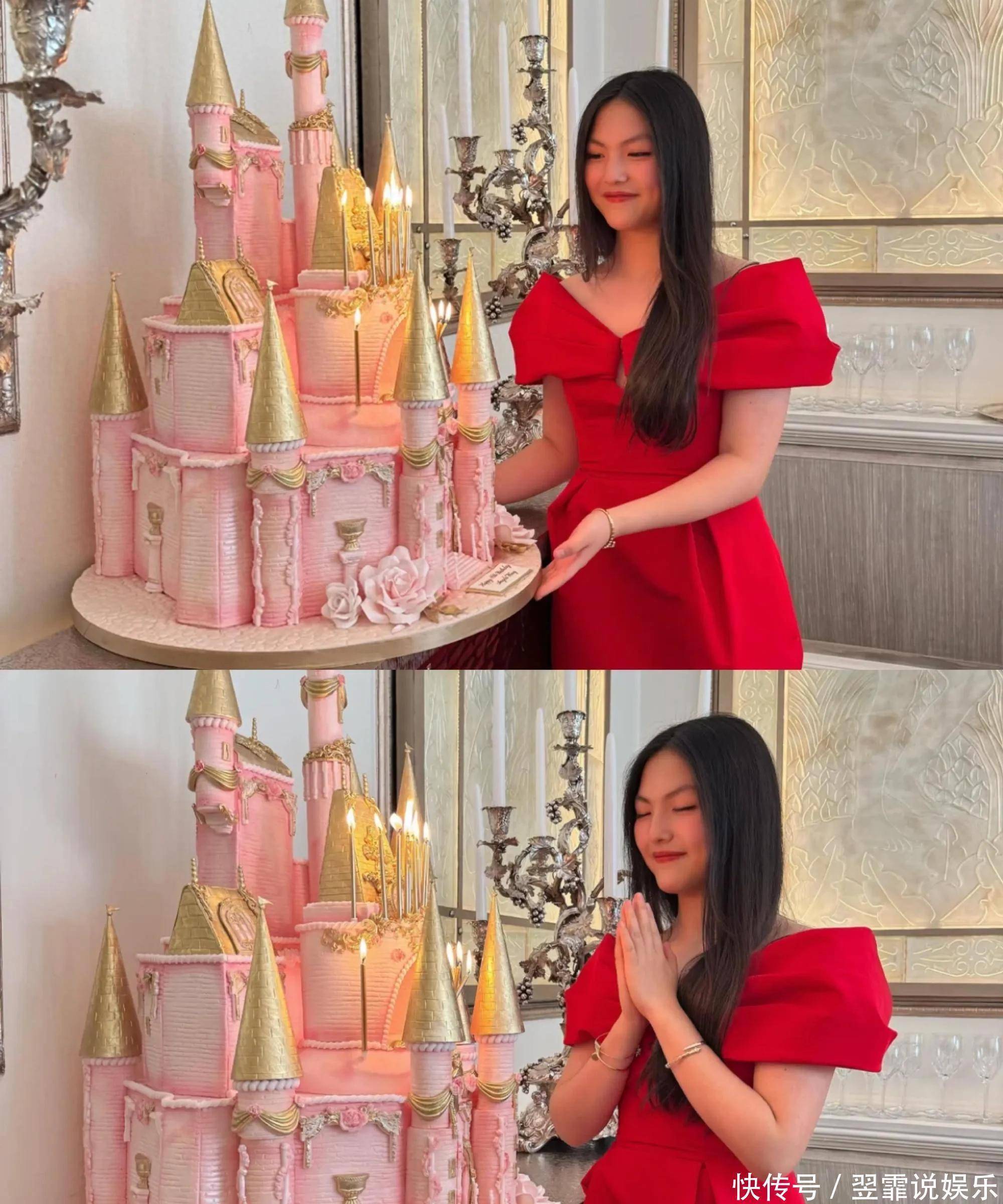 生日派对现场布置得十分精致,被各式鲜花和蜡烛环绕,仿佛一个浪漫的童话世界。据多家媒体报道,李湘和王岳伦特意挑选了一处豪华别墅作为庆生场地,现场装饰了许多灯和满墙花卉,鲜艳美丽,充满了生命力。最吸引眼球的是那个巨大的 “城堡款生日蛋糕” ,蛋糕呈粉色城堡造型,做工精致,色彩搭配完美,如同艺术品般令人惊叹。蛋糕差不多有半个人高,金碧辉煌的外观让网友们震惊不已,纷纷好奇“这是真的可以吃的蛋糕吗”。
